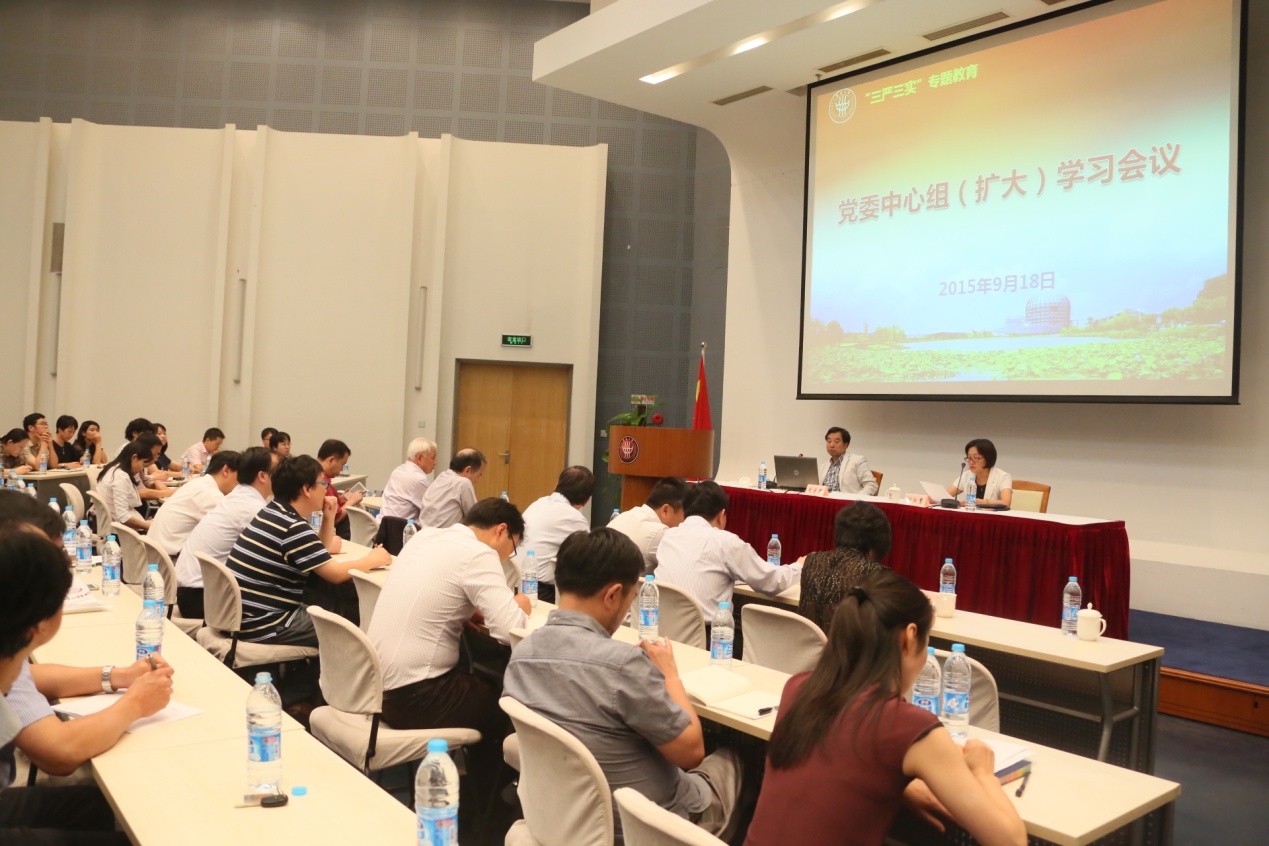 刘淑慧指出,学校党委根据中央精神和教育部的部署,启动“三严三实”专题教育活动,坚持两手抓、两不误,将开展专题教育活动与推动学校改革发展稳定工作相结合,取得了初步成效。她要求,学院和部门负责同志要带头深入学习贯彻中央全面从严治党精神,组织好所在部门“三严三实”专题教育活动,并结合实际开展研讨,将“严”和“实”的要求落实到推动学校各项事业发展的具体行动中,以奋发向上的精神面貌迎接第十次党代会的召开。