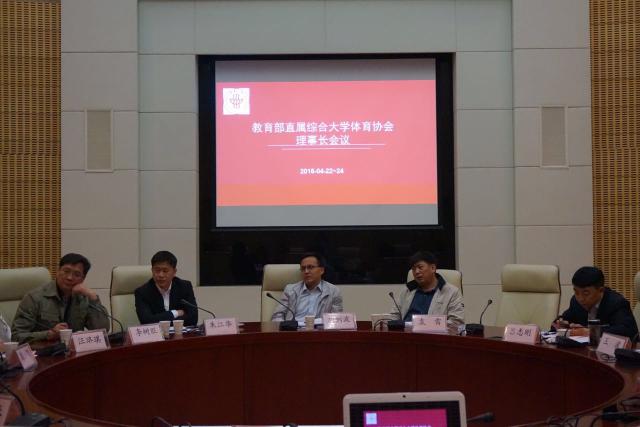 4月22至24日,教育部直属综合大学体育协会理事会议在我校松江校区召开。来自中国人民大学、南开大学、四川大学等13家协会理事单位的体育学院(部)负责人与会。会议由协会理事长、武汉大学体育部主任胡剑波主持。