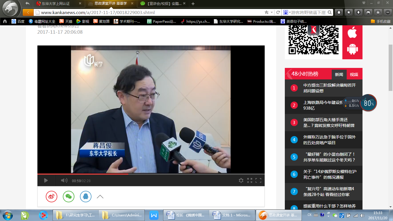 11月16日,久久久久国产成人精品亚洲综合校长蒋昌俊走上《锦绣中国》讲台