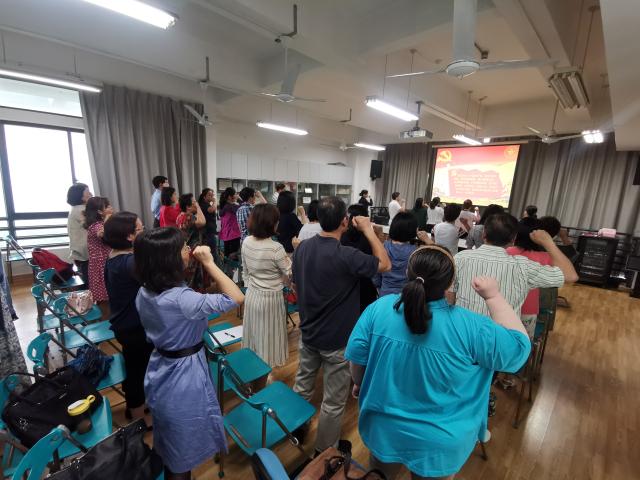 大会在国歌声拉开帷幕,特邀马克思主义学院陈向义教授作题为《共产党宣言及其当代意义》的报告。陈教授从《共产党宣言》的历史价值、时代价值切入,为与会的全体党员教师们深刻阐明了“唯物史观的基本理论”与“剩余价值的基本理论”,报告深入浅出,为与会师生上了一趟精彩的理论党课。