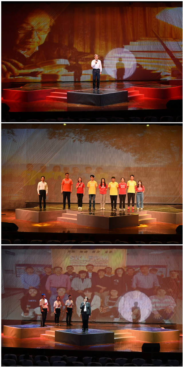 在讲授的基础上,主题党课通过朗诵、原创大师剧等形式,引导广大党员干部学思践悟新思想,既增强了学习教育的政治性、理论性,又提升了实效性和感染力,在党员教师和青年学生中引起了热烈反响。化工生物学院辅导员张文馨告诉记者:“今天很荣幸聆听了这堂党课,看得热血沸腾,听得几度落泪……在我们身边有这样强大的榜样力量,作为新时代的思政工作者,这堂课让我收获了工作的动力,明确了培养学生的方向,也更坚定地担当起育人者的初心使命。”人文学院2019级硕士研究生梁雪说:“这堂东华人的专属党课,给了我们新生了解学校很好的途径。作为一个东华人、一名预备党员,我感到十分兴奋和自豪!在课堂上,我深切感受到祖国真的太强大了!我们都是建设祖国的一份子,心中涌起很强的参与感,对走好自己的求学路、人生路也信心倍增。”
