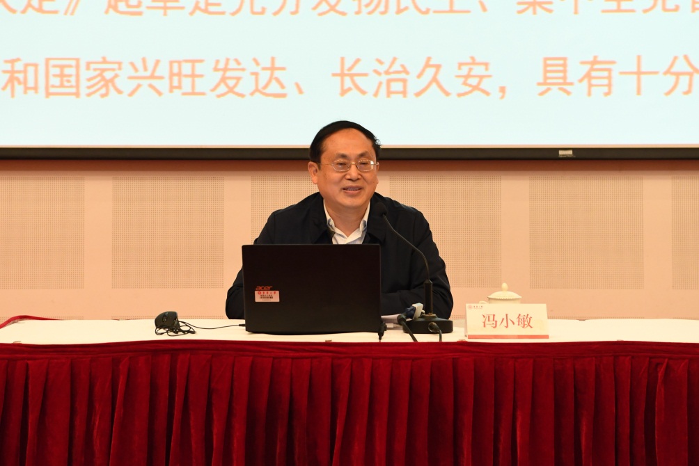 报告中,冯小敏从党的十九届四中全会及其主题的重大意义,中国特色社会主义制度和国家治理体系的显著优势,坚持和完善中国特色社会主义制度、推进国家治理体系和治理能力现代化的总体要求、总体目标和重点任务等方面进行深刻阐述,强调必须加强党的领导,确保全会制定的各项目标任务全面落实到位。