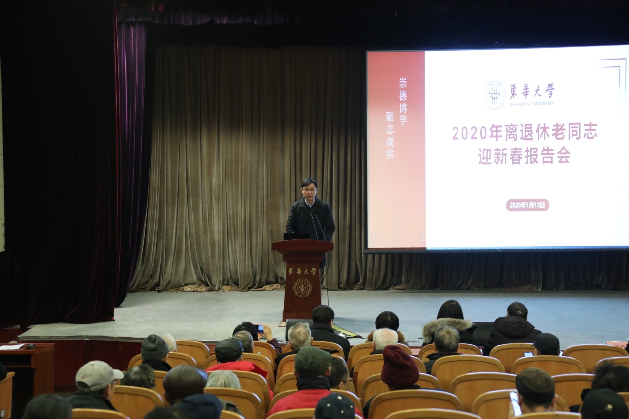 1月13日上午,学校2020年离退休老同志迎新春报告会在延安路校区举行,校党政领导与离退休老领导、老同志们欢聚一堂,再叙情谊,共谋发展,喜迎新春。党委书记刘承功、校长俞建勇出席报告会,会议由党委副书记崔运花主持。