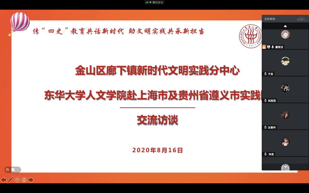 (实践团与金山区廊下镇新时代文明实践分中心相关负责人线上交流访谈)