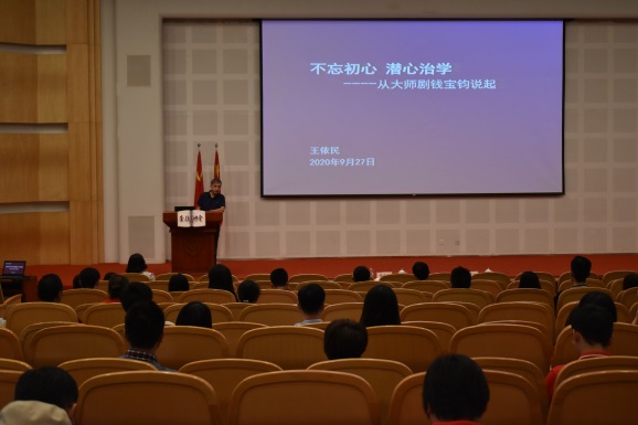 观众中坐着一位特别的嘉宾——材料科学与工程学院研究员、“崇德讲堂”导师王依民,作为钱宝钧先生的学生、剧中的原型,这是他又一次与新东华人一同观看大师剧《钱宝钧》。落幕后,他走上讲台倾情讲述剧目之外“背后的故事”,用鲜活的事例分享恩师钱老的爱国情怀、大师风范,谨终如始、晨兢夕厉的治学态度,为人师表、甘为人梯的高尚师德,并勉励青年教师要立志高远,用“一辈子做好一件事”的执着潜心治学。