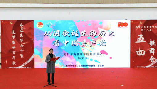 “起来,不愿做奴隶的人们,把我们的血肉筑成我们新的长城!”1300余名师生,在延安路体育馆为国而歌,唱响对革命英雄的礼赞,以“奋进东华七十载,追梦盛世百年歌”为主题的管理学院第十八届五四歌舞会暨青年团员党史学习教育举行,师生共课堂,将家国情怀融入青春歌舞,让党史学习出“新”更入心。
