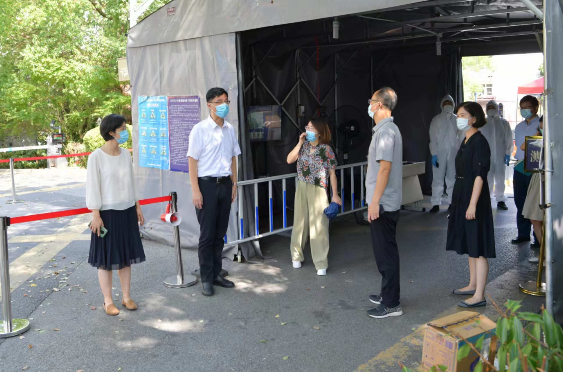 在松江校区,刘承功一行对校园疫情防控和开学条件保障等各方面工作进行全面检查。在文汇路300弄校门口,陆续有返校学生完成测温、验码,有序入校。刘承功强调,当前疫情防控形势依然严峻,要严格落实师生返校管理规定,守好校园安全防线,确保师生健康安全和新学期开学工作平稳有序。在教学楼、图书馆、学生宿舍、食堂、教育超市、体育馆核酸检测点、教师之家隔离点、在建工地等场所,刘承功指出要充分做好教学科研、后勤保障、生活服务等各项准备工作,统筹做好线上和线下教学,强化安全责任意识,为师生提供安全舒心的学习工作环境。刘承功一行还走访了计算机学院、生物与医学工程学院和化学与化工学院,认真查看开学教学准备、实验室安全等相关工作,叮嘱师生们调整好精神状态,以崭新面貌迎接新学期到来。