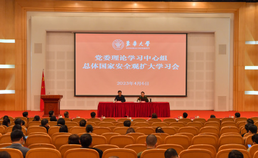 4月6日,在第八个全民国家安全教育日即将到来之际,校党委理论学习中心组在松江校区举行扩大学习会,专题学习总体国家安全观,邀请国防大学政治学院马克思主义理论系副主任杨瑞茹教授作辅导报告。党委书记刘承功,校长俞建勇,党委副书记崔运花、王云骏、项延训,副校长陈革、李炜、赵震,党委常委朱英、任晓杰参加学习会。刘承功主持会议。