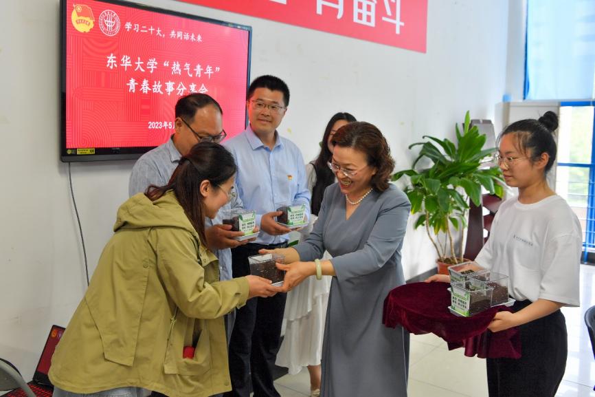 活动中,刘承功为青年师生赠送《论党的青年工作》,鼓励他们在学思践悟中汲取青春奋进力量。崔运花为青年师生赠送“青春花种”,希望他们不断积聚能量、向阳而长,绽放青春之花。
